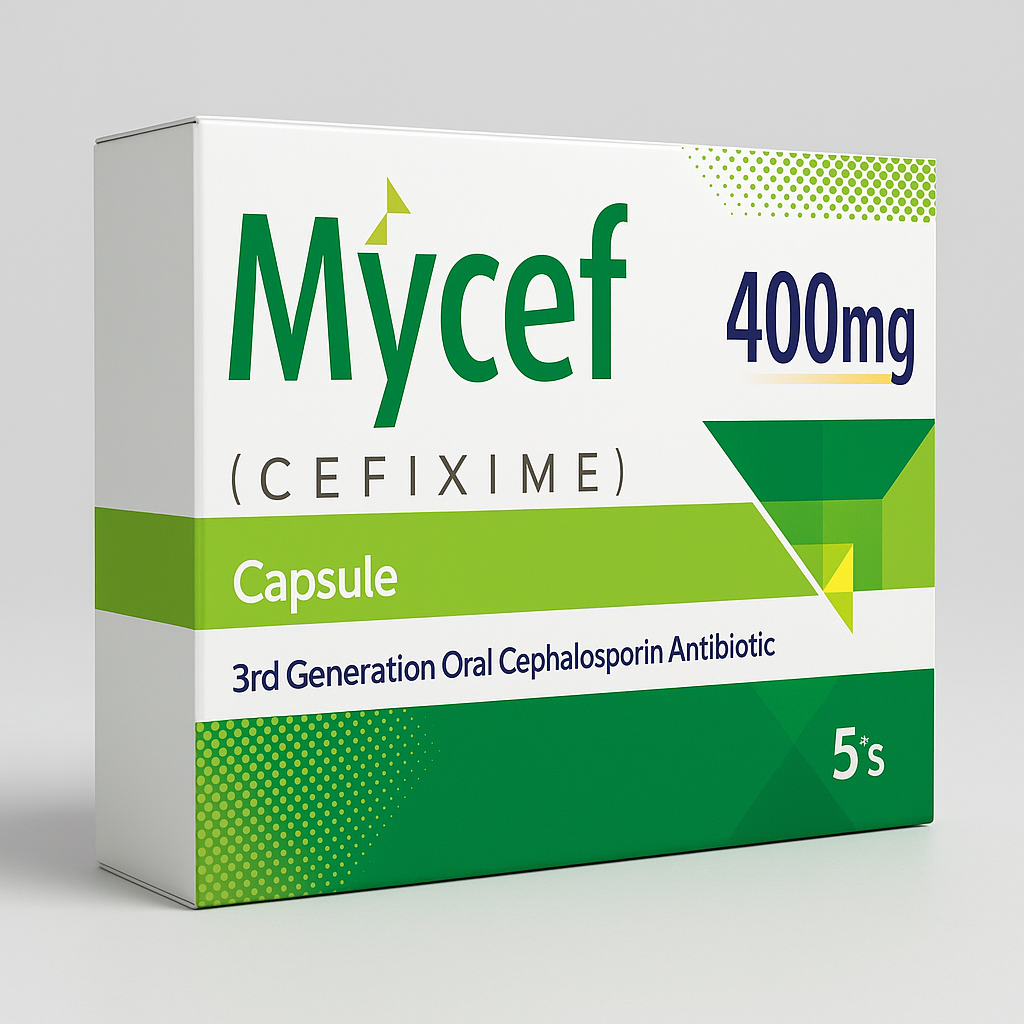 Mycef 400mg is a broad-spectrum antibiotic containing Cefixime, a third-generation oral cephalosporin used to treat various bacterial infections. It is effective against respiratory tract infections, urinary tract infections, otitis media, and certain gastrointestinal infections caused by susceptible organisms.