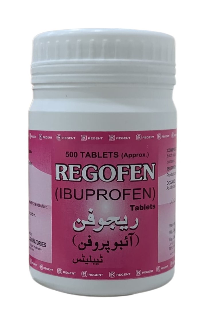 Regofen (Ibuprofen) Tablets by Regent Laboratories are formulated to provide fast and effective relief from pain, inflammation, and fever. Each container includes approximately 500 tablets, making it an ideal solution for high-volume clinical use, pharmacies, or individuals who require consistent dosing over time. Known for its anti-inflammatory and analgesic properties, Ibuprofen is a widely trusted medication used to manage headaches, muscle pain, joint stiffness, and menstrual discomfort. Regofen is manufactured under stringent quality standards, ensuring safety, potency, and reliable results. The bold, tri-lingual labeling on the bottle ensures clarity for diverse markets. Whether for professional or personal use, Regofen delivers dependable performance when you need it most.